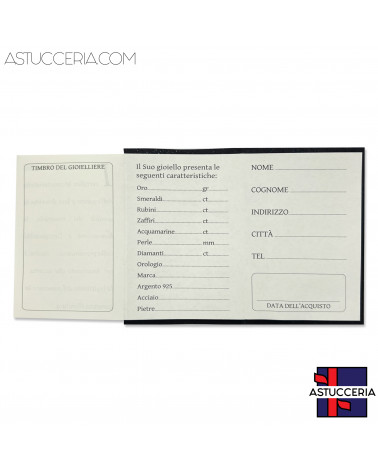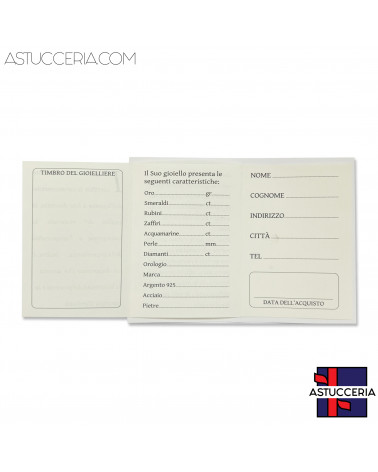 CERTIFICATI DI GARANZIACertificato Di Garanzia Per Gioielli Libretto Con Custodia 58x80mm 50 pezzi Nero Brillantato 40,40 € Aggiungi al carrello