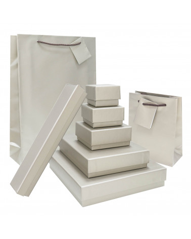 R: La spugna floccata multitagli nelle misure piccole offre la flessibilità necessaria per diversi tipi di minuteria. Il cartoncino floccato nelle misure grandi (come 190x220mm o 135x190mm) fornisce invece la rigidità strutturale indispensabile per sostenere il peso di collane importanti senza flettere. - D: La shopper inclusa è realizzata con lo stesso materiale dell'astuccio?