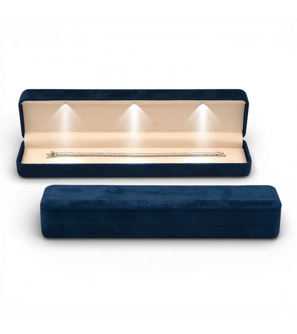 Astucci Per Gioielli Con Luce Linea LATINA 240x55x40mm Bracciale 4 pezzi Suede Blu