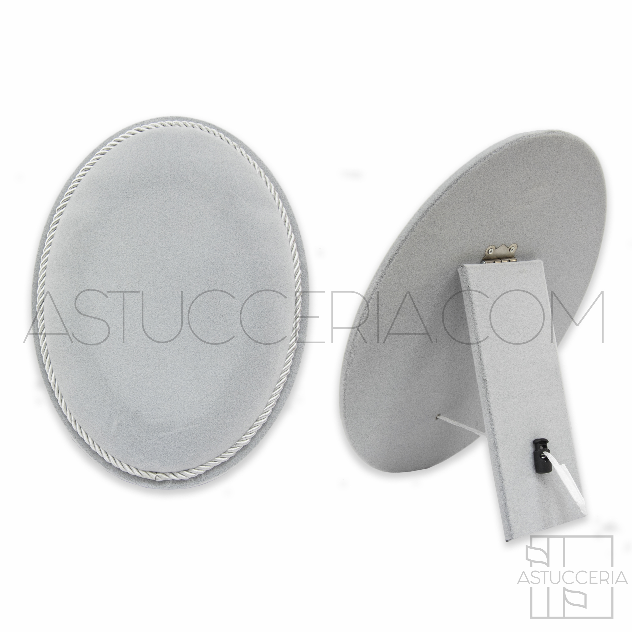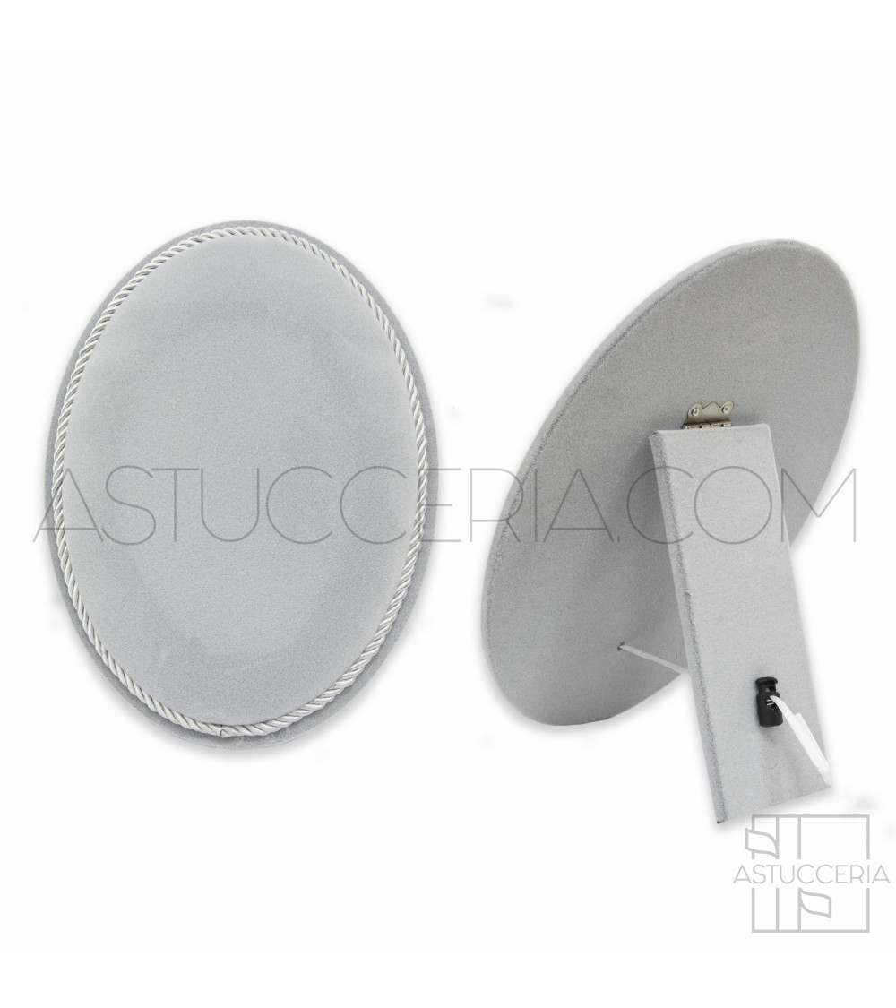 Espositore Per Orecchini Cornice Con Corda Ovale 19x26cm Velluto Grigio