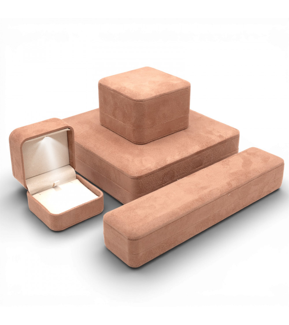 Astucci Per Gioielli Con Luce Linea LATINA 70x70x55mm Multiuso 6 pezzi Suede Tortora