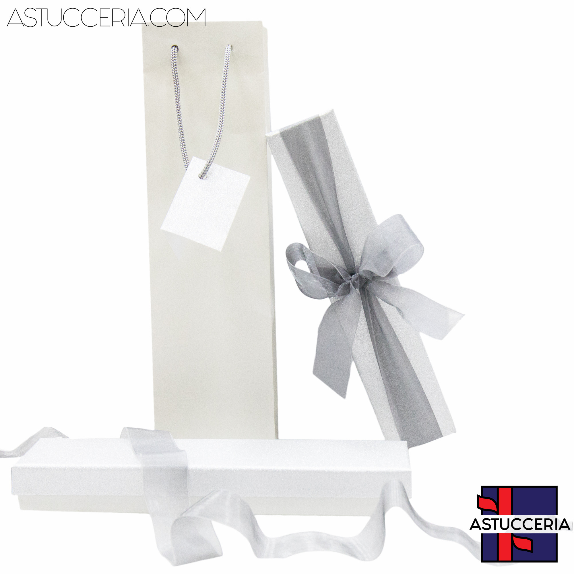 Astuccio In Cartoncino Linea MONTECARLO 222x45x30mm 12 pezzi Shopper Abbinata Argento