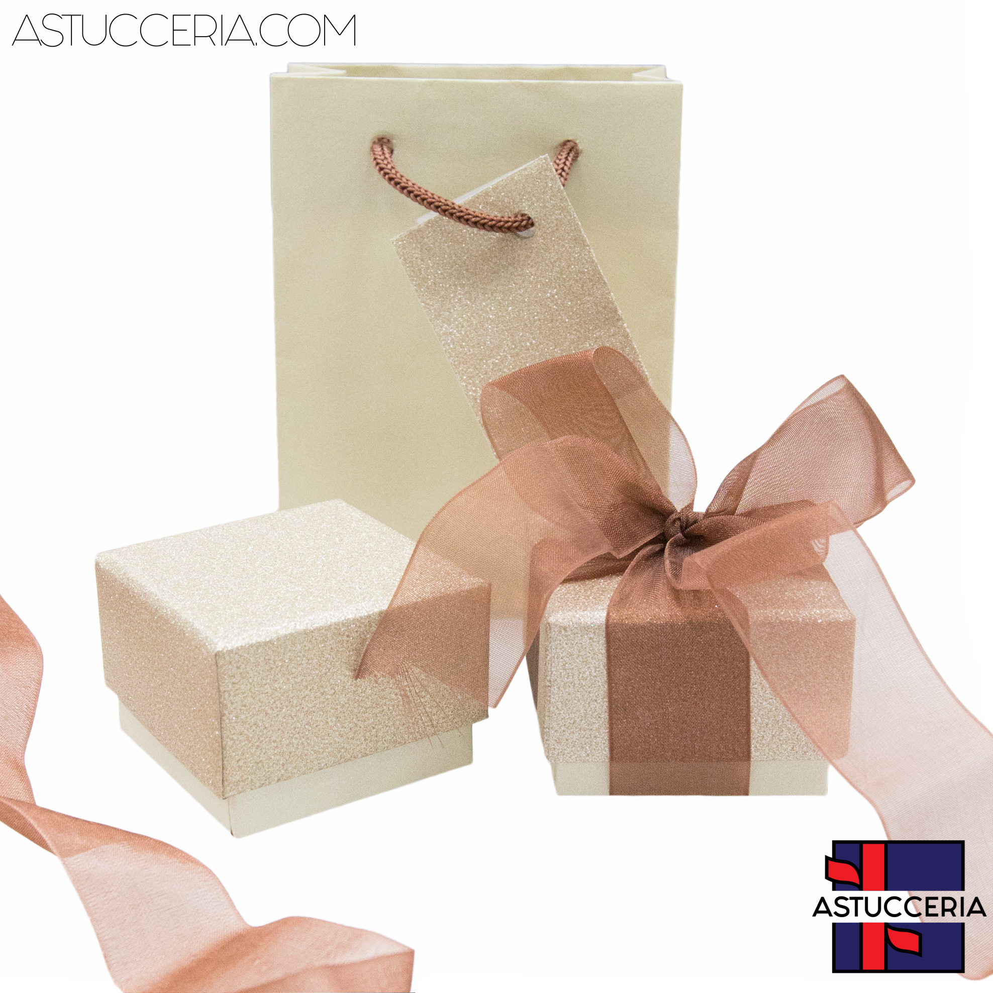 Astuccio In Cartoncino Linea MONTECARLO 55x55x40mm 24 pezzi Shopper Abbinata Oro