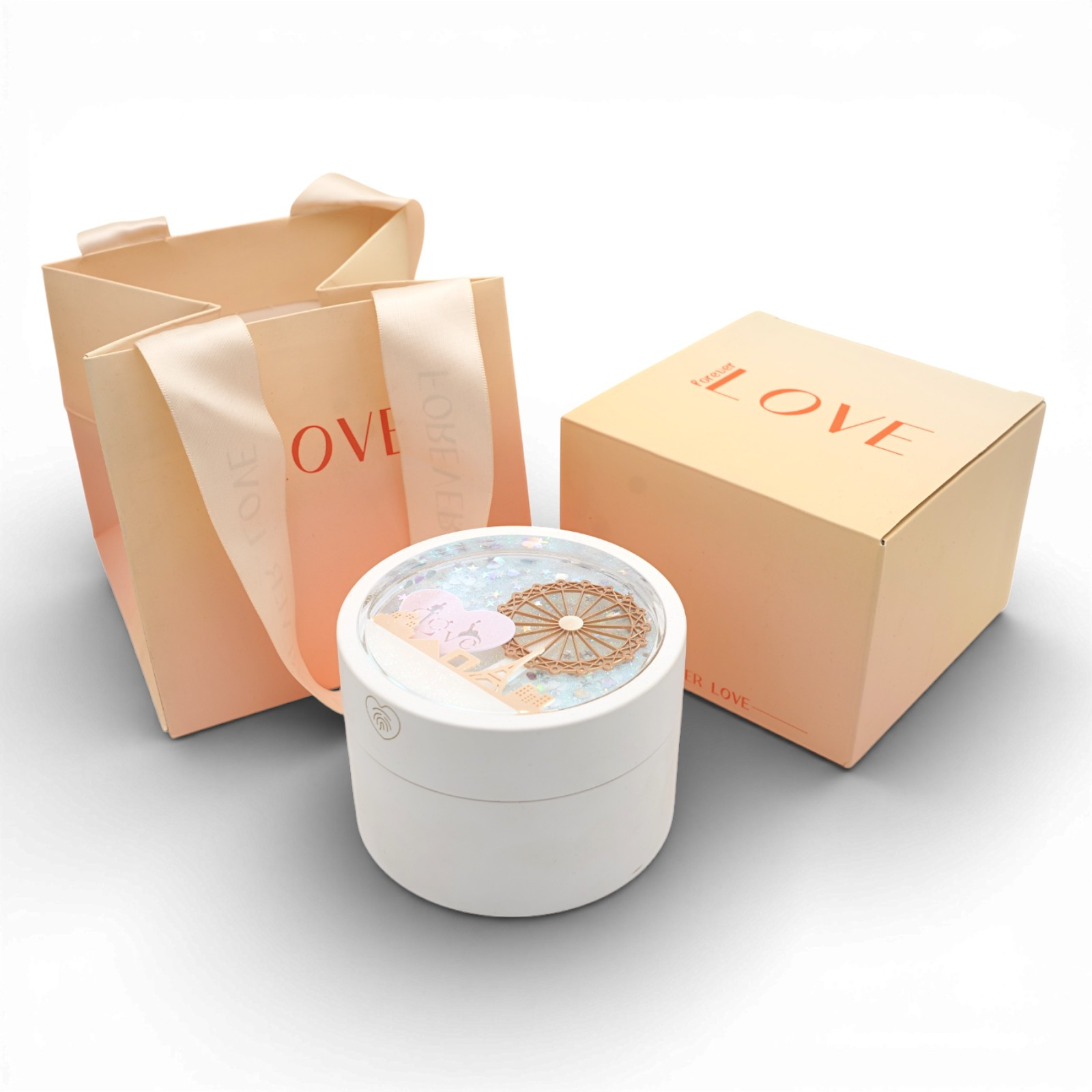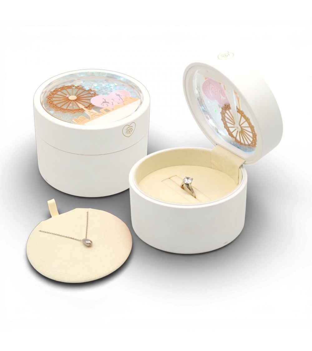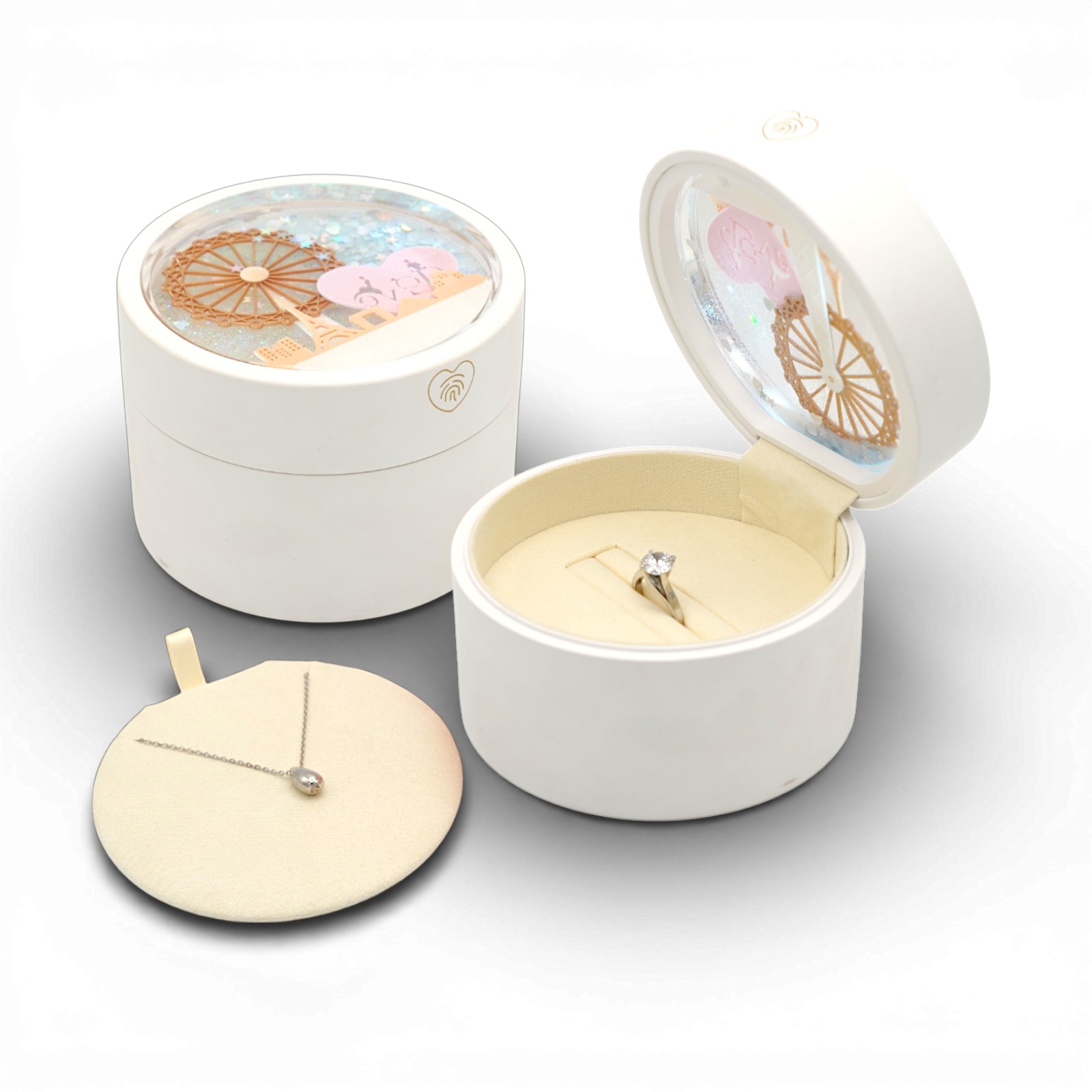 Astuccio Con Luce Touch, Glitter e Shopper Linea PARIGI 100x100x70mm Multiuso Anello Collana Bianco