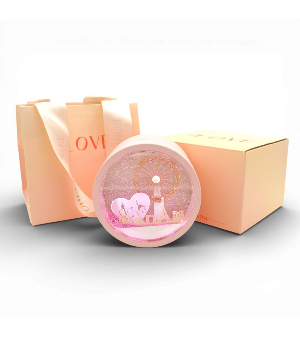 Astuccio Con Luce Touch, Glitter e Shopper Linea PARIGI 100x100x70mm Multiuso Anello Collana Rosa