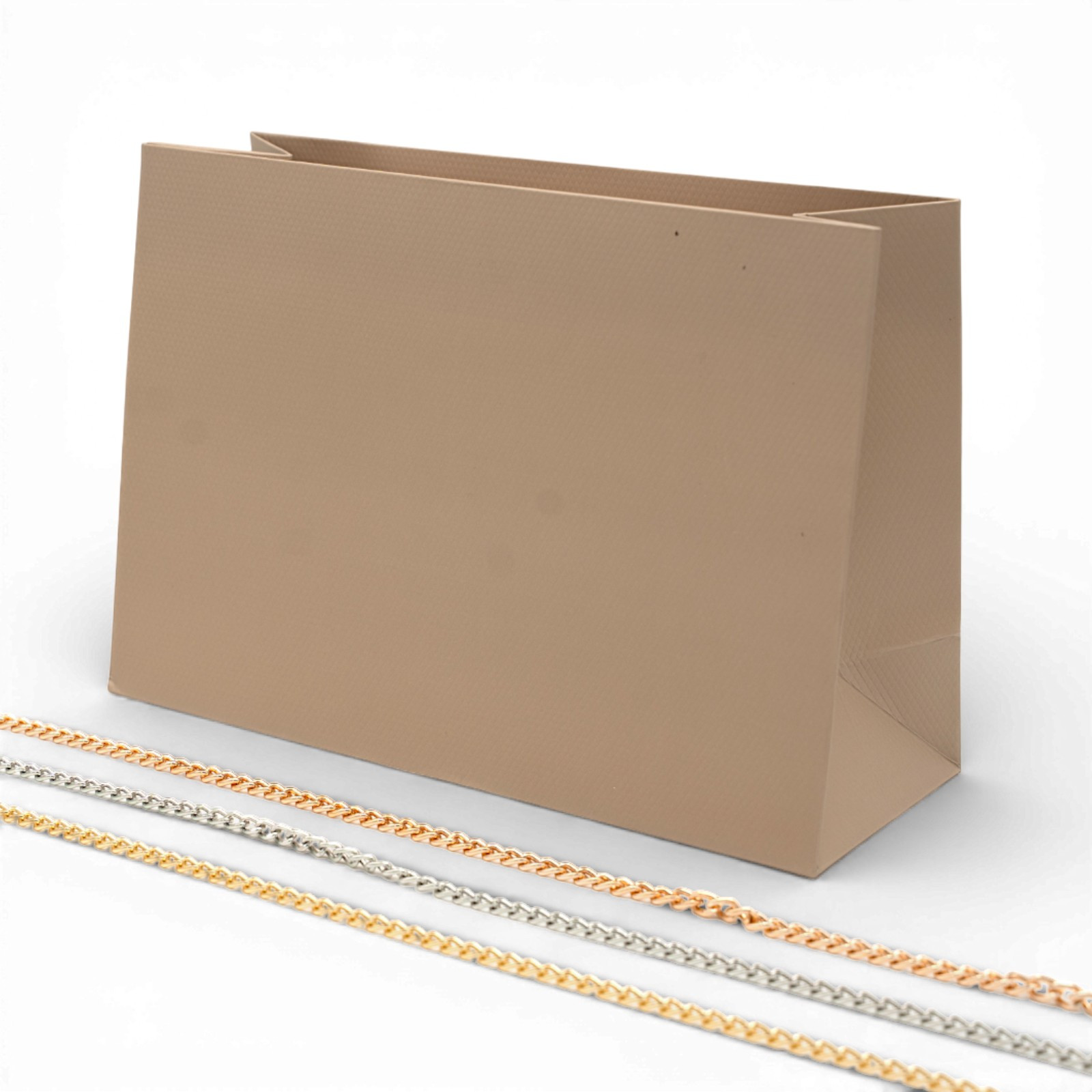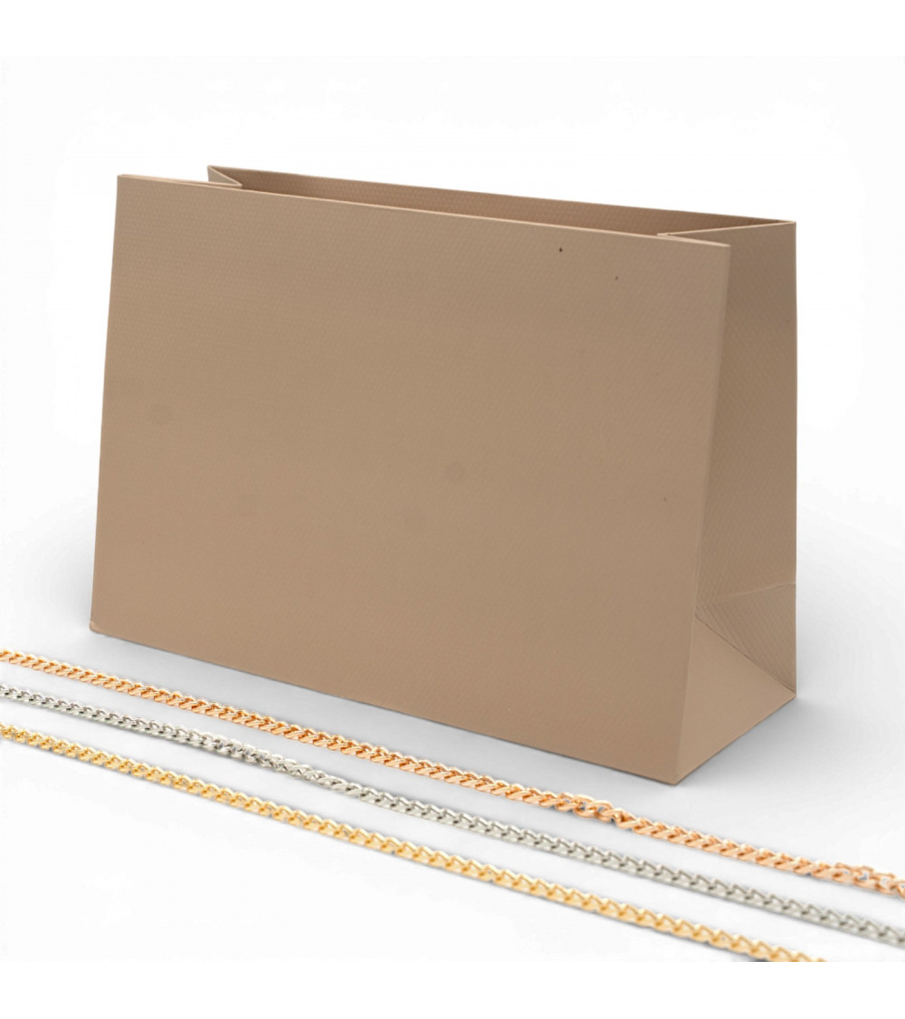 Busta Shopper Di Carta Con Catena Linea GINEVRA 26x22x12,5cm 12 pezzi Tortora + Argento