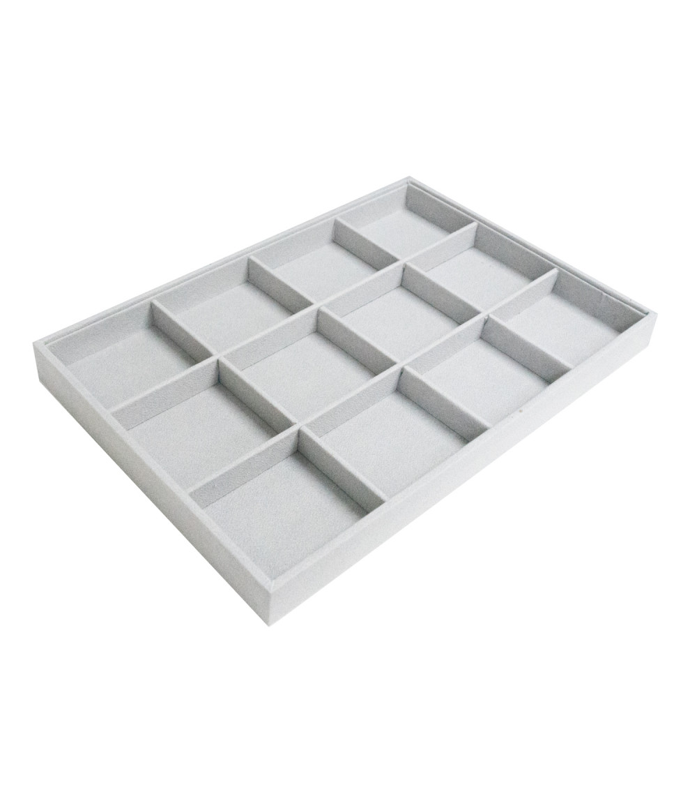 Vassoio Per Gioielli Linea CLASSICO 35x24x3cm 12 Scomparti Microfibra Grigio
